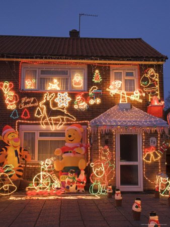- Print Title: Suburban House with Christmas Lights and Decorations, Surrey, England, United Kingdom